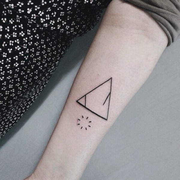 手臂黑色神秘三角形与有趣的圆形符号纹身图案