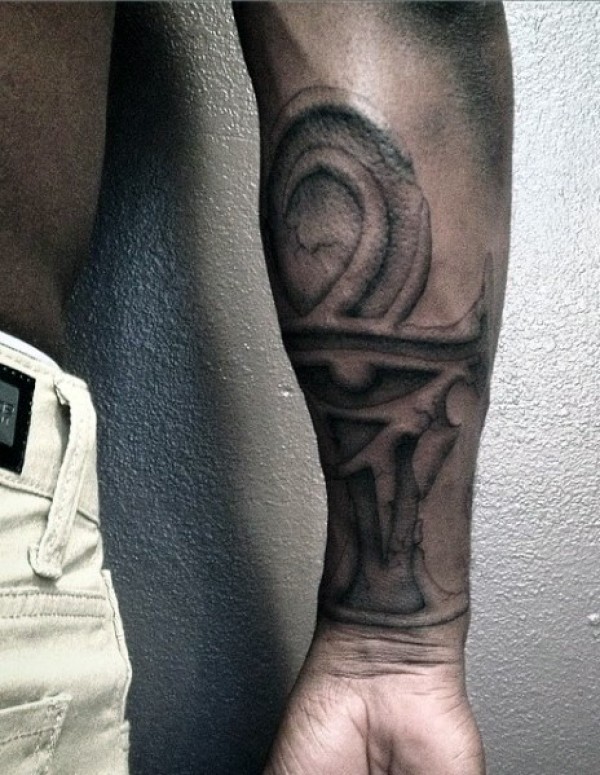 小臂漂亮的黑色荷鲁斯之眼纹身图案