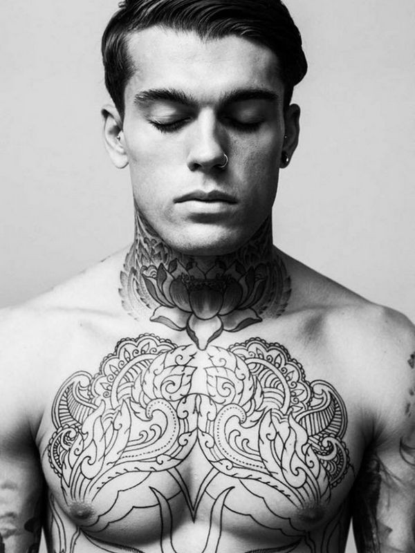 男士胸部装饰风格黑色花卉纹身图案