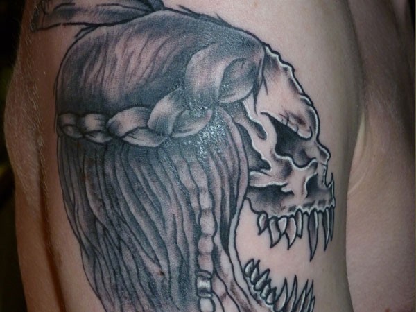 大臂令人毛骨悚然的恶魔骷髅纹身图案