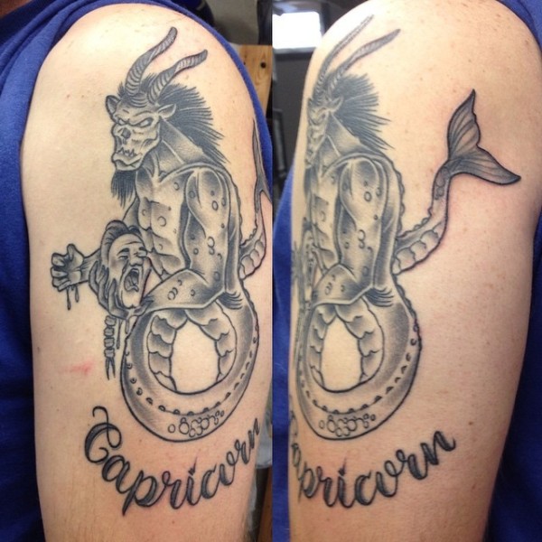手臂小小的黑白神秘恶魔鱼形动物纹身图案