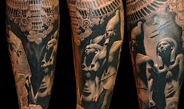 写实风格逼真的黑白各种埃及雕像纹身图案