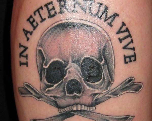 简单的海盗风格黑色骷髅与字母纹身图案