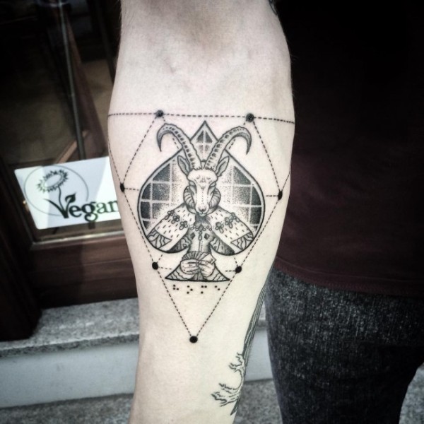 手臂神奇的黑色神秘山羊黑桃符号纹身图案