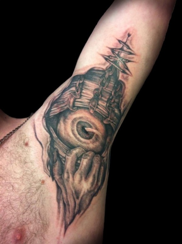 大臂恐怖电影可怕的黑白眼睛纹身图案