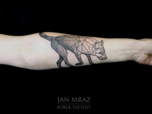 小臂几何风格黑色狼纹身图案