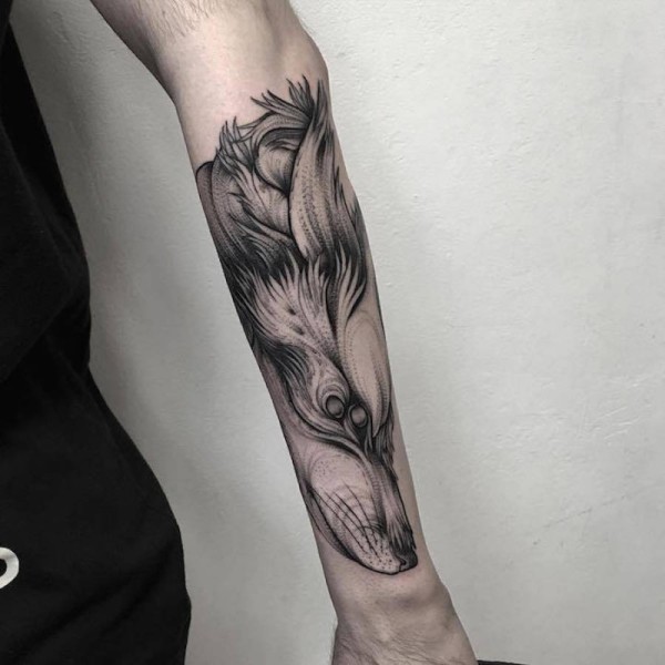 手臂old school黑色恶魔狼纹身图案
