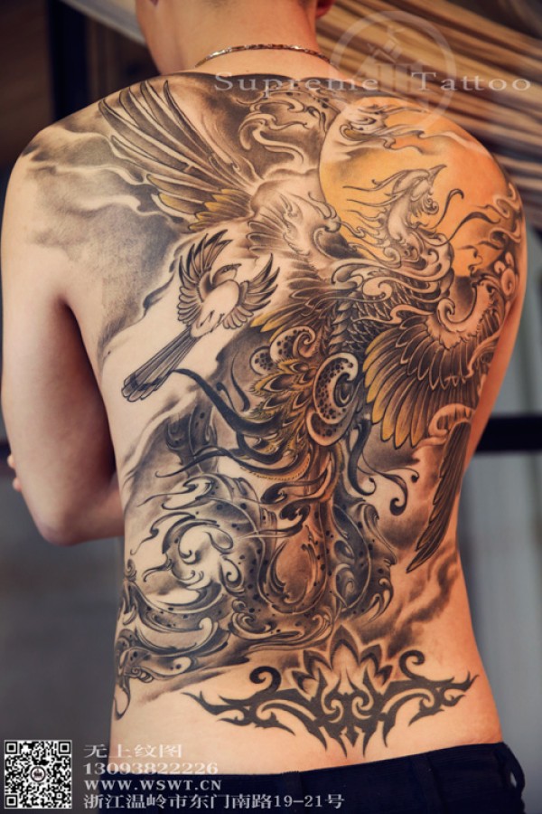 凤凰纹身 后背凤凰纹身人不多,但是很好看
