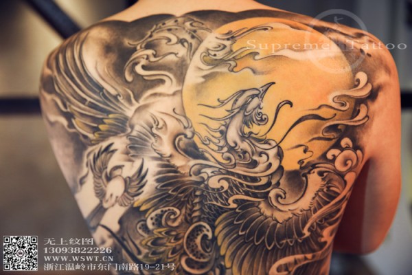 凤凰纹身 后背凤凰纹身人不多,但是很好看