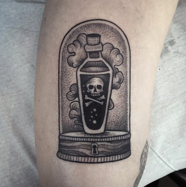搞笑黑色卡通玻璃酒瓶骷髅纹身图案
