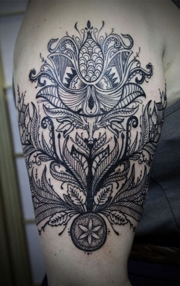 大臂不寻常的设计黑白花卉饰品纹身图案
