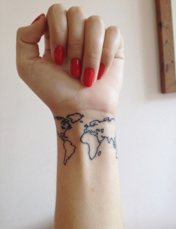 手腕黑色小尺寸世界地图轮廓纹身图案