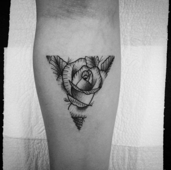 小臂黑色三角形轮廓与玫瑰花纹身图案