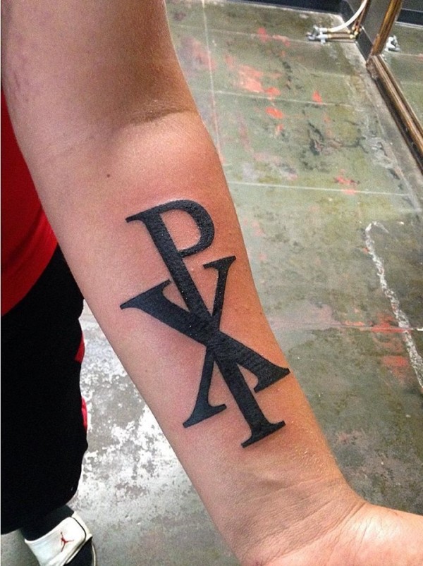 小臂令人印象深刻的黑色宗教符号纹身图案