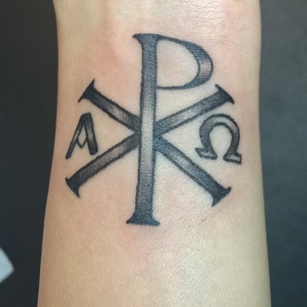 手腕黑白宗教象征符号纹身图案