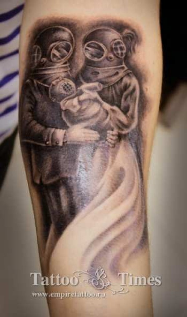 手臂old school旧潜水员家庭纹身图案