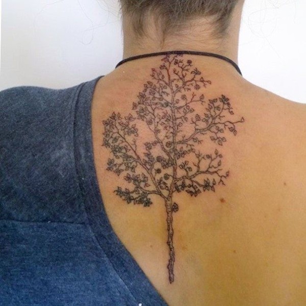 背部逼真的黑色树纹身图案