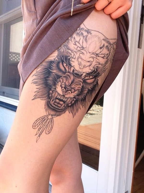 大腿令人难以置信的黑色各种野兽纹身图案
