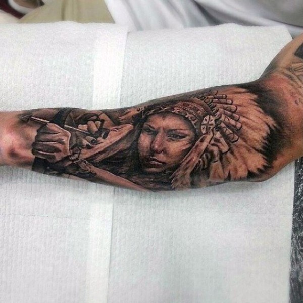 小臂黑色印度女射肖像纹身图案