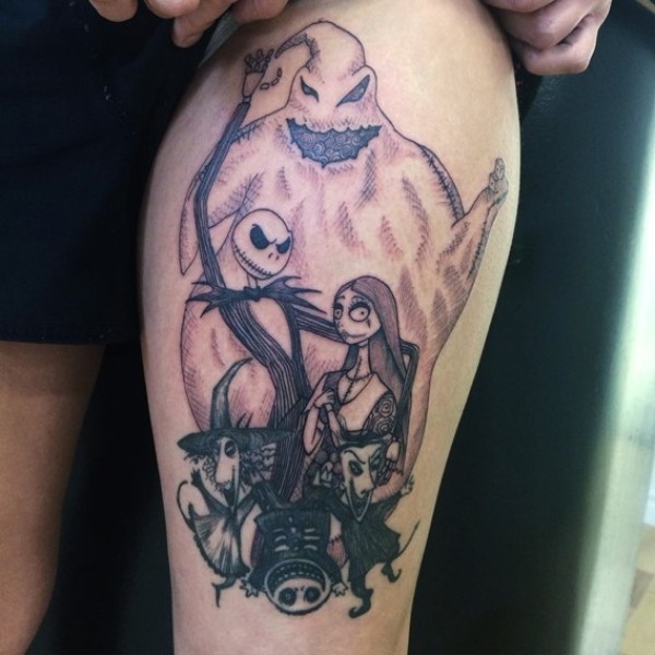 大腿好看的黑色僵尸夫妇与幽灵纹身图案