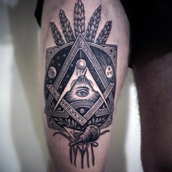 大腿黑色神秘的眼睛三角形大麦纹身图案