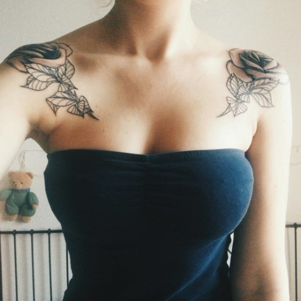 女性肩膀上多款漂亮的花朵纹身图案