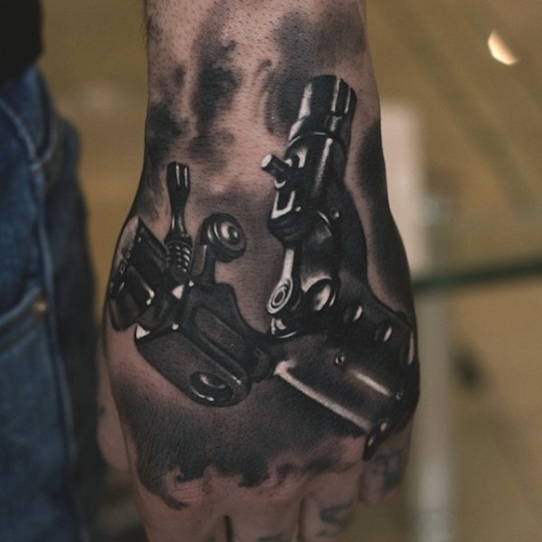 手背有趣的黑色逼真纹身机纹身图案