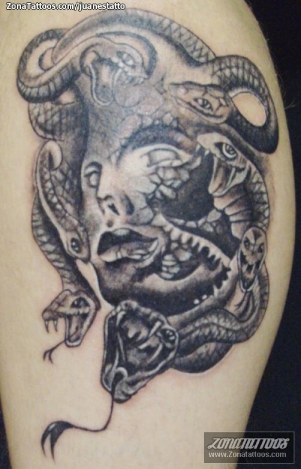 old school黑色美杜莎头像破碎纹身图案