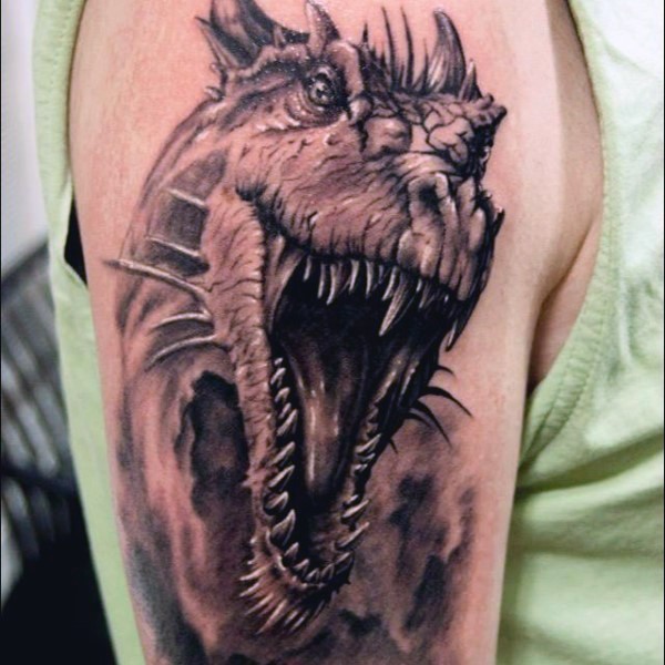 龙纹身手稿_一组老传统黑灰龙手稿纹身图案