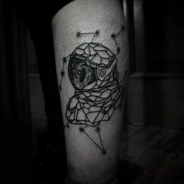 小腿黑色几何宇航员与星星纹身图案