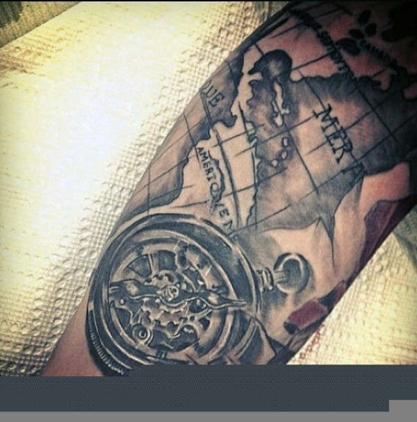 黑色的地图与指南针纹身图案
