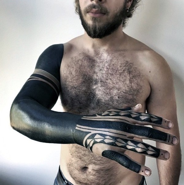 手臂简单的大面积黑色纹身图案