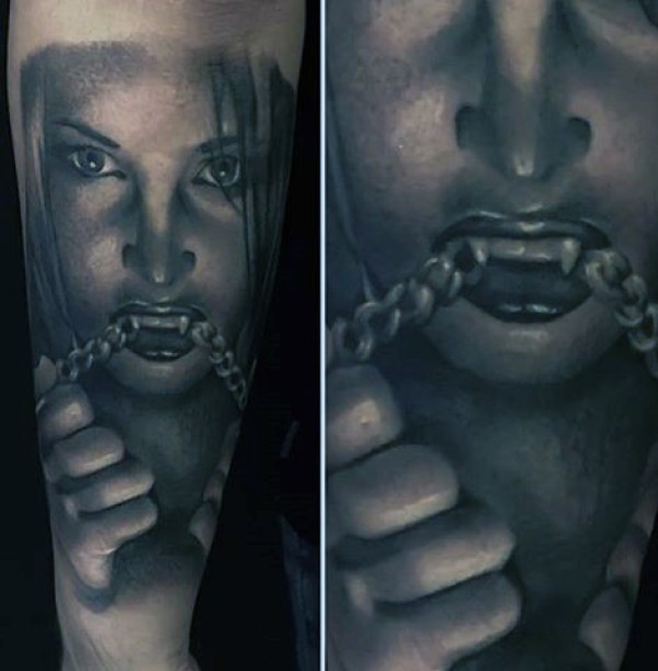 可怕的黑灰吸血鬼女人个链条纹身图案