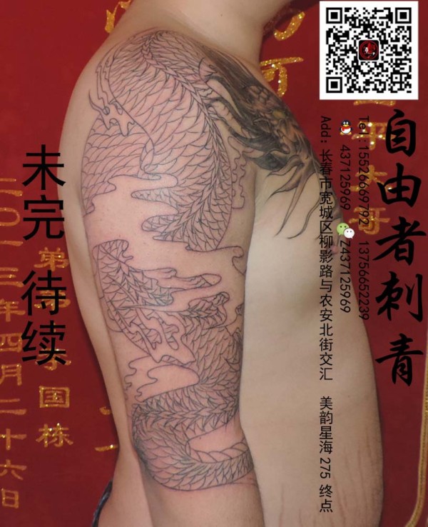 日式手彫刺青作品—半甲龙很感谢客户认可手彫刺青,手彫是日本纹身的手工雕刻技术,时间可以追溯到日本17世纪的江户时代。19世纪,手彫技术被日本黑帮挪用,被用作入会仪式,象征着从此就是江湖中人。在日式传统