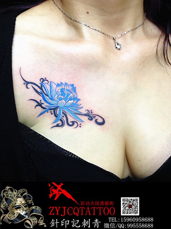 胸部花纹身--福建纹身--三明沙县针印记(针功夫)纹身作品