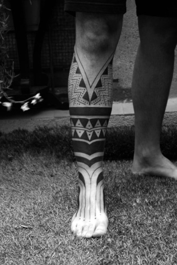 简单的黑色部落图腾小腿纹身图案