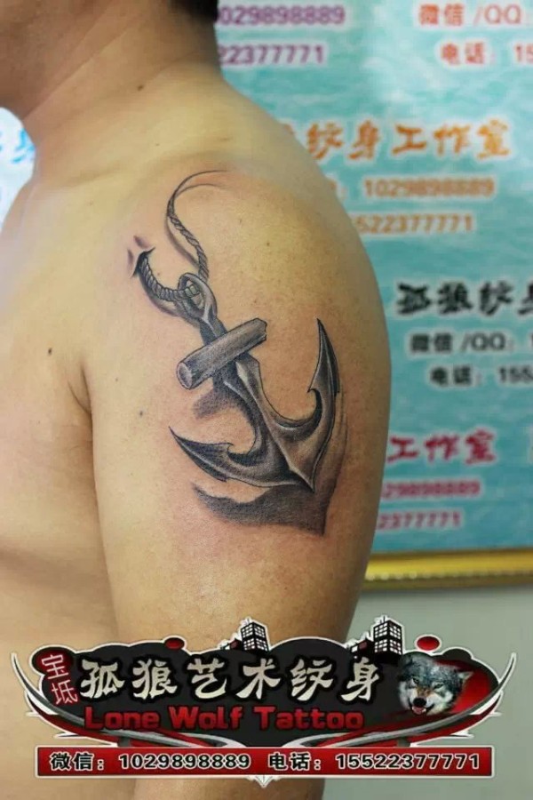 大臂铁锚纹身 天津宝坻孤狼纹身工作室 微信{QQ}:1029898889 电话:15522377771