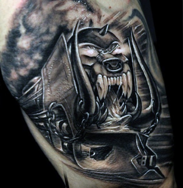令人印象深刻的黑灰恶魔列车纹身图案