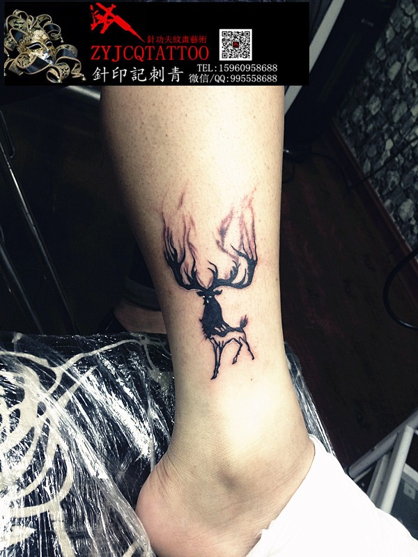 脚部小鹿纹身--福建纹身-三明沙县针印记(针功夫)刺青作品