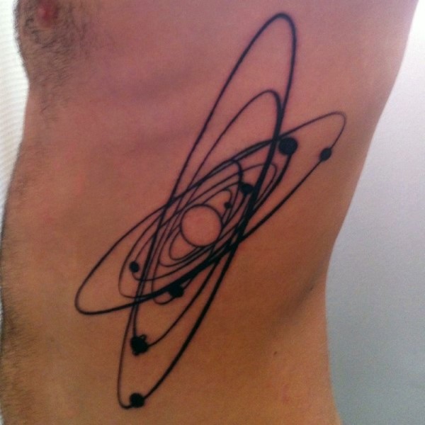 简单的黑色太阳系侧肋纹身图案