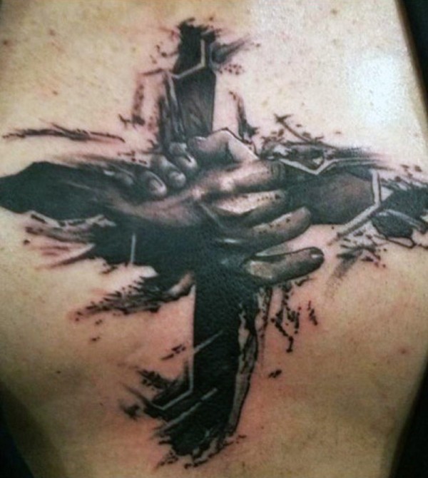 胸部戏剧风格的黑灰手纹身图案