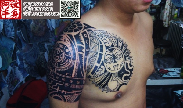 老虎图腾纹身 多款黑灰纹身点刺技巧老虎纹身图案