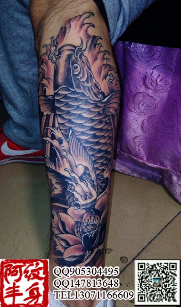 黑白鱼纹身图案