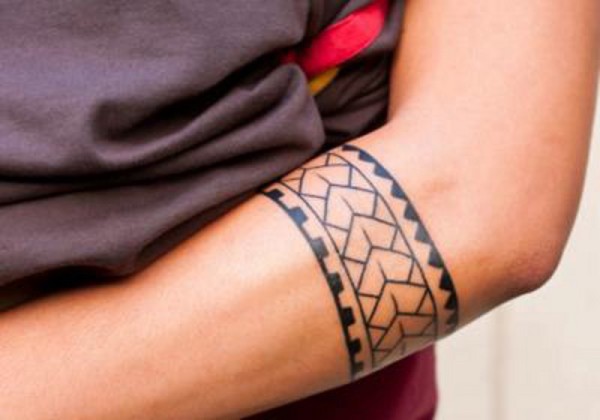 手臂黑色部落臂章手环纹身图案