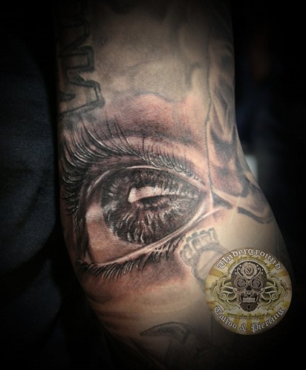 超逼真的悲伤眼睛黑灰纹身图案