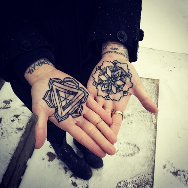 奇妙的黑色梵花手心纹身图案
