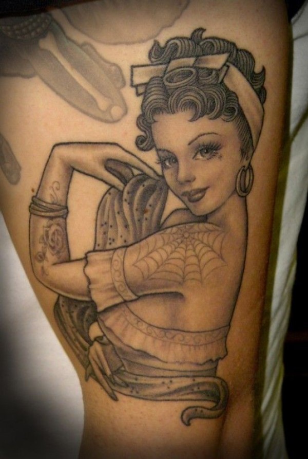 大腿时尚黑灰美丽舞者肖像纹身图案