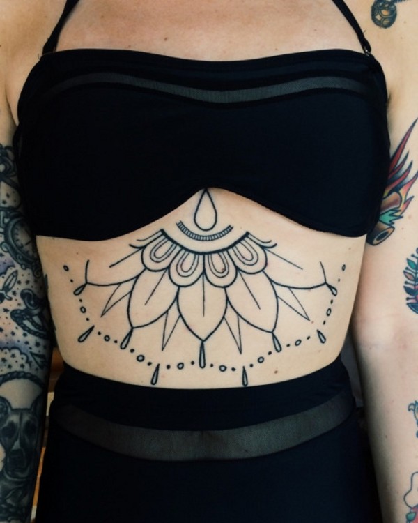 简单的腹部黑色挂饰纹身图案