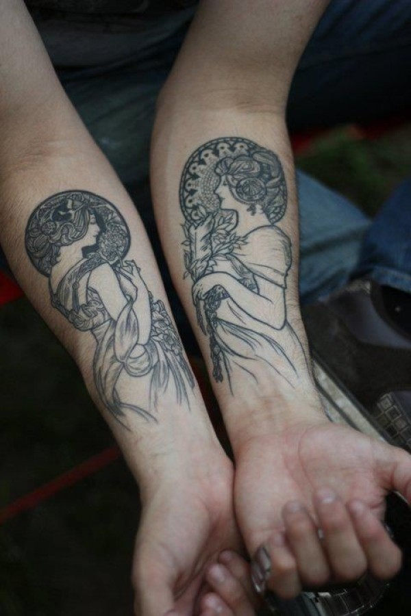 双子座纹身手稿_29张十二星座之双子座纹身图案手稿