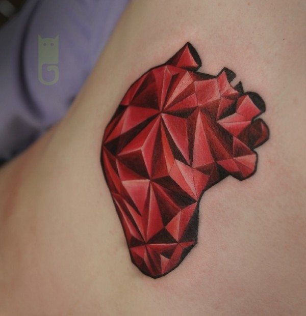 红色和黑色的立体三角形组合心脏纹身图案